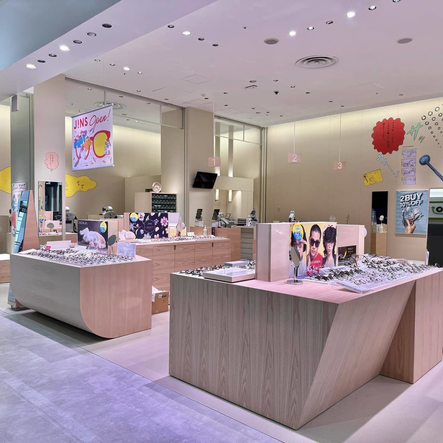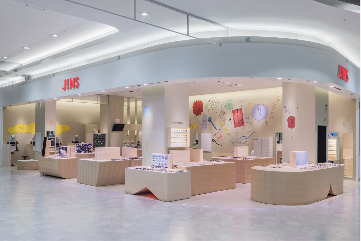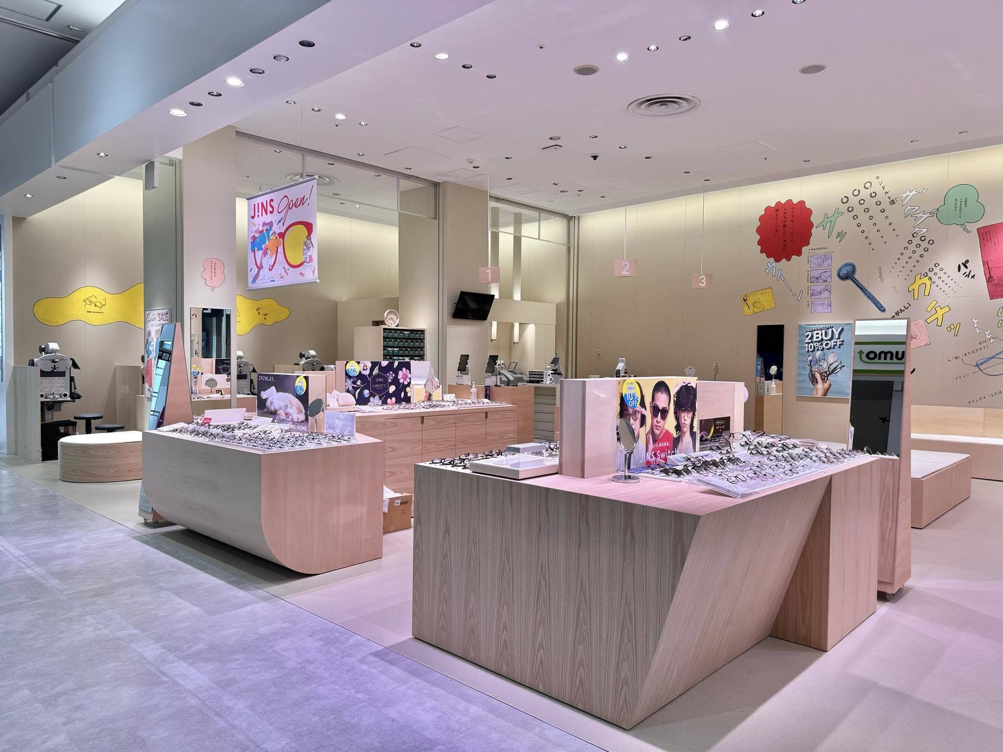 JINSイオンモール太田店のリニュアルオープンに合わせて店舗内の壁面装飾を担当しました。