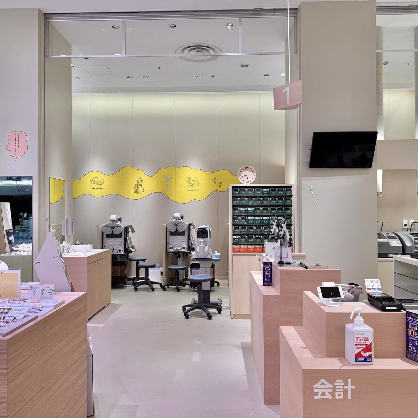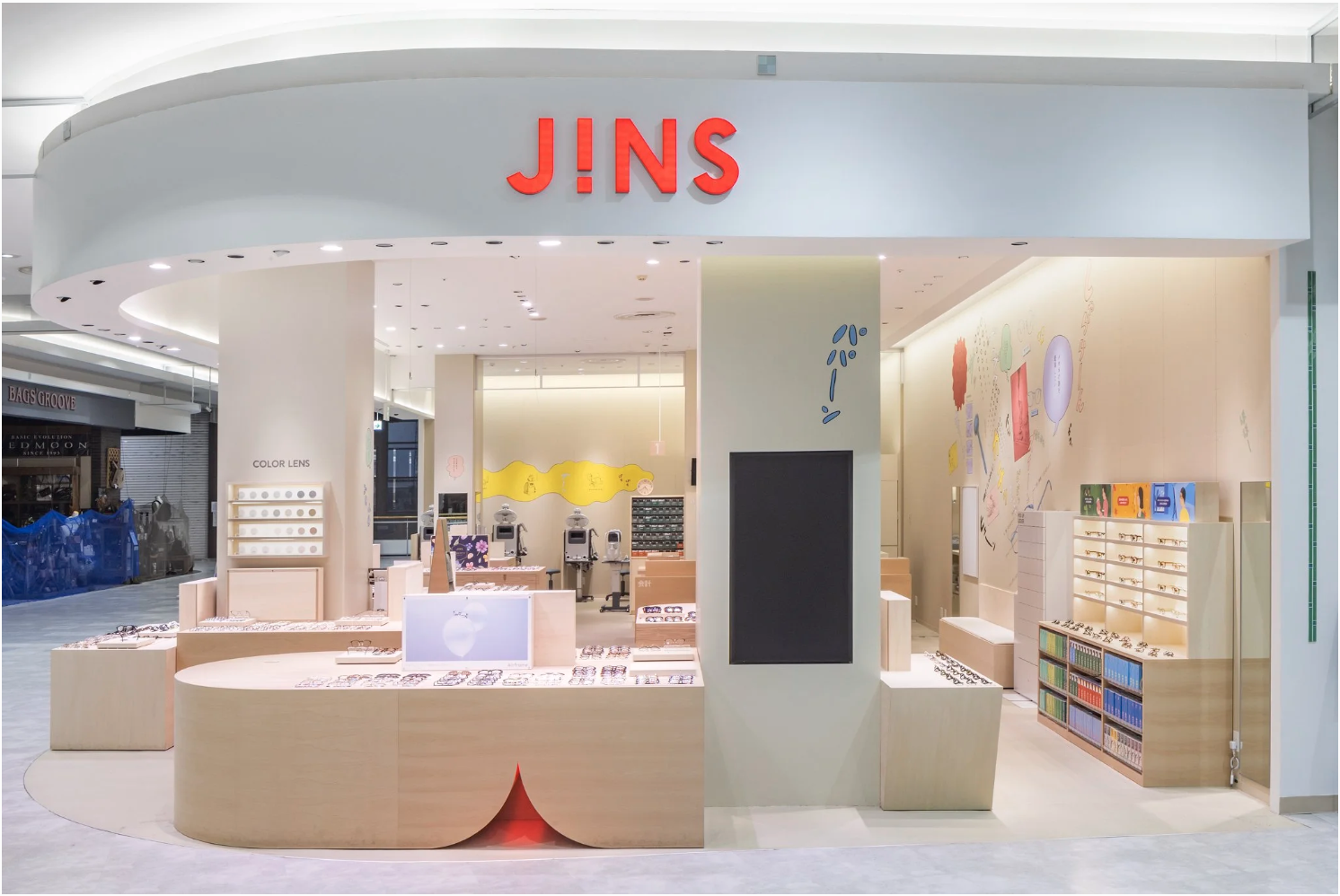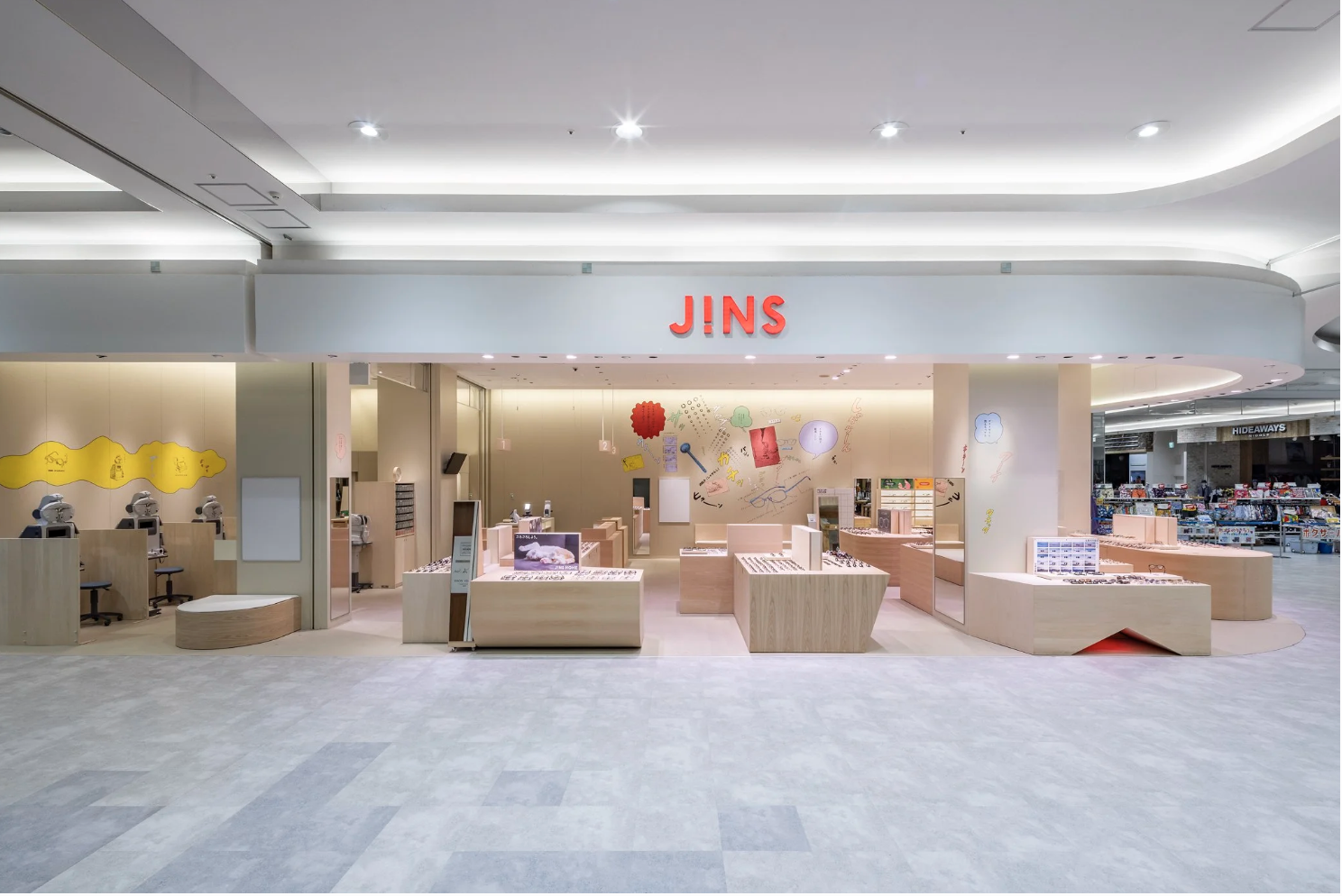 JINSイオンモール太田店のリニュアルオープンに合わせて店舗内の壁面装飾を担当しました。